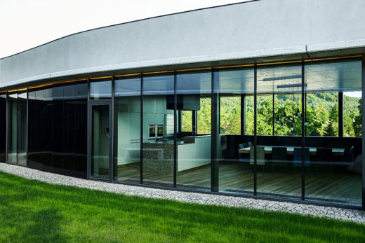 Aluminium patio doors are particularly sturdy, durable and weather-resistant. They allow for narrow frames, large glass surfaces and high energy-efficiency – ideal for light-flooded, modern living spaces.